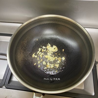 步骤2、炒锅中喷入适量的山茶油,油热后放入蒜头爆炒下